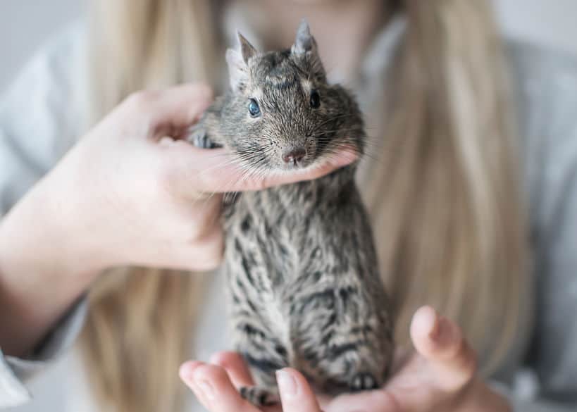 Degus are a lesser-known breed of rodent, but they can be quite affectionate, just like the chinchilla. When you first get a degu, they tend to be more stand-offish and cautious, but as they get to know you, they will become much more affectionate to you and even other degus if you have several. They are also very intelligent animals that can be easily tamed and can even learn their names.