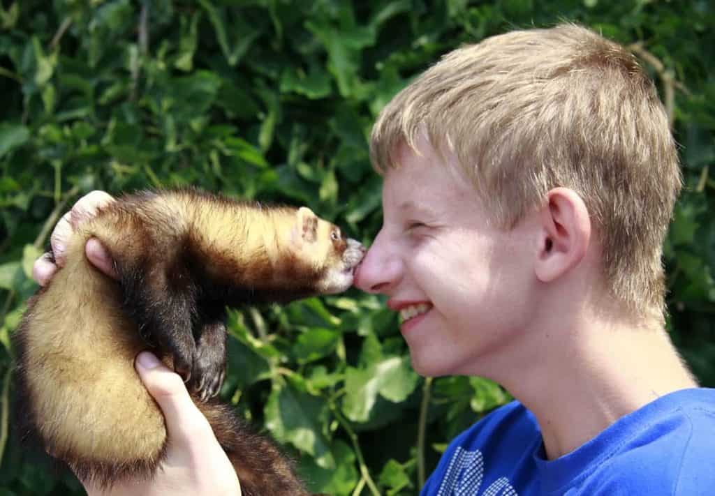Children of age must learn not to shout at their pets. Yanking too hard could injure the spines of young ferrets, so children must be taught to gently hold ferrets close, so they feel safe and secure.