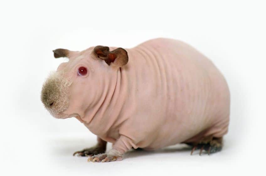 If you want to see the real-life Benjamin Button effect, raising the Baldwin guinea pig is often quite an experience. It is born with normal fur but starts to lose its hair by the time they are two months old. Most Baldwins are only sold to the public after the very end of their shedding.